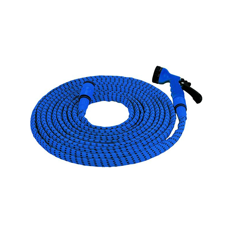 TUBO ESTENSIBILE HUFIRMA CORAL IN KIT - anima in TPR alta resistenza, rivestimento esterno in tessuto elastico, pressione di esercizio 6 bar, con pistola 7 funzioni di innaffio, 2 raccordi rapidi, adattatore rubinetto e tubo, estensibile al passaggio dell acqua